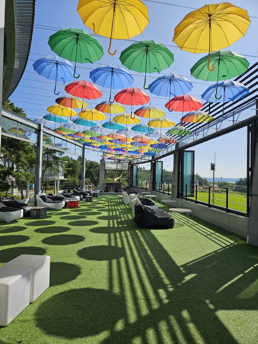 When the weather permits, enjoy your coffee on the terrace, where you can gaze out at the stunning landscape. It's the perfect setting to immerse yourself in nature's beauty as you sip away — the gentle breeze mixes beautifully with the aroma of your drink. As pointed out by various patrons like Sungjun Lee and 쩌니, the view, particularly at sunset, is nothing short of spectacular. The colorful umbrellas overhead add a whimsical touch to your outdoor experience, making it a dream for anyone who enjoys capturing picturesque moments.